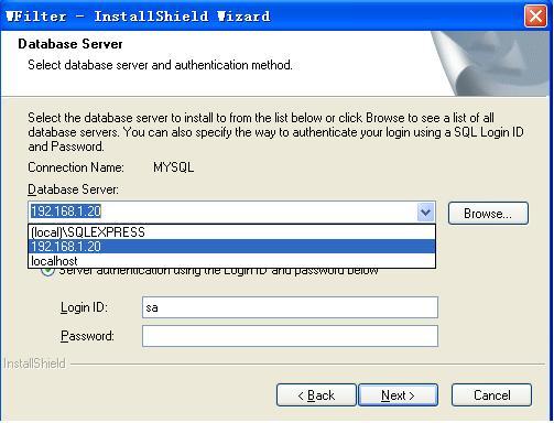 As in Figure 3.3, input the server ip, and mysql Login ID and Password.